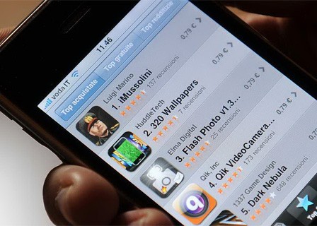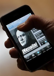 De iPhone-applicatie iMussolini was op 28 januari de meest gedownloade applicatie van de dag. Foto AFP.