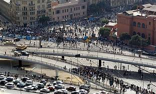 Anti-government protesters took over the "Sixth of October" Bridge overlooking Tahrir (Liberation) Square in Cairo on Thursday.