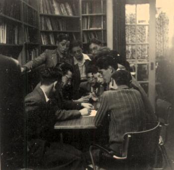 Amstel 21, bestuur en bewoners in de Lioni zaal, 1947